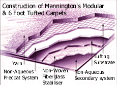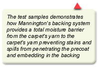 a wet cleaning maintenance system must have a moisture barrier that prevents stains and spills from penetrating the preccoat and secondary backing. Mannington's backing system provides a dual moisture barrier that blocks the potential for bacterial growth and